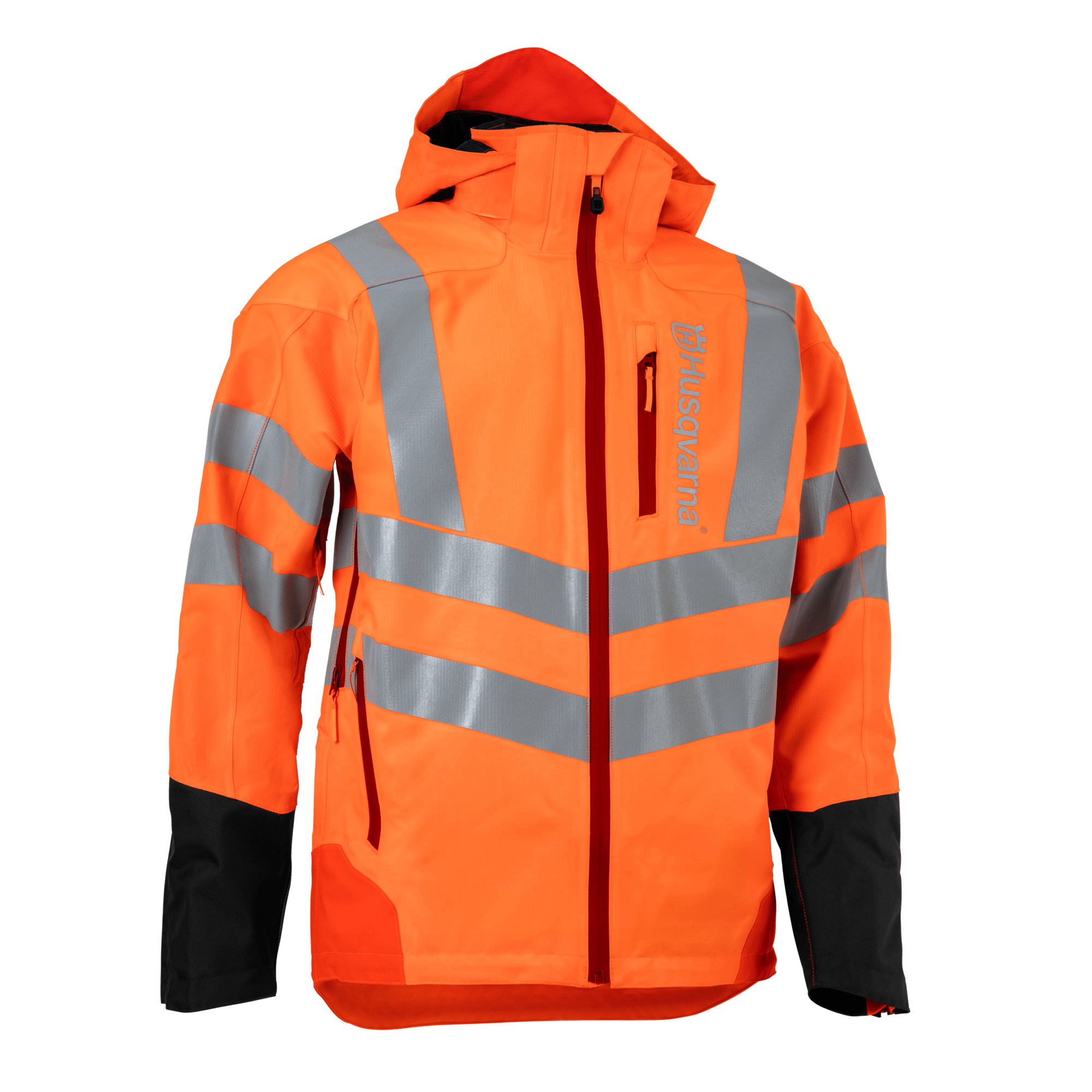 En regnjacka av hög kvalitet med extra förstärkning på utsatta ställen. Jackan är vattenavvisande och andas tack vare tekniken med laminat och tejpade sömmar. Tillverkad i slitstark polyester med mekanisk stretch. Jackan har avtagbar huva och är justerbar i midjan och längst ner för perfekt passform. Fickorna har vattentäta dragkedjor för säker förvaring av tillhörigheter. Godkänd enligt EN ISO 20471 klass 3 och EN 343. Storlek XS–XXL.