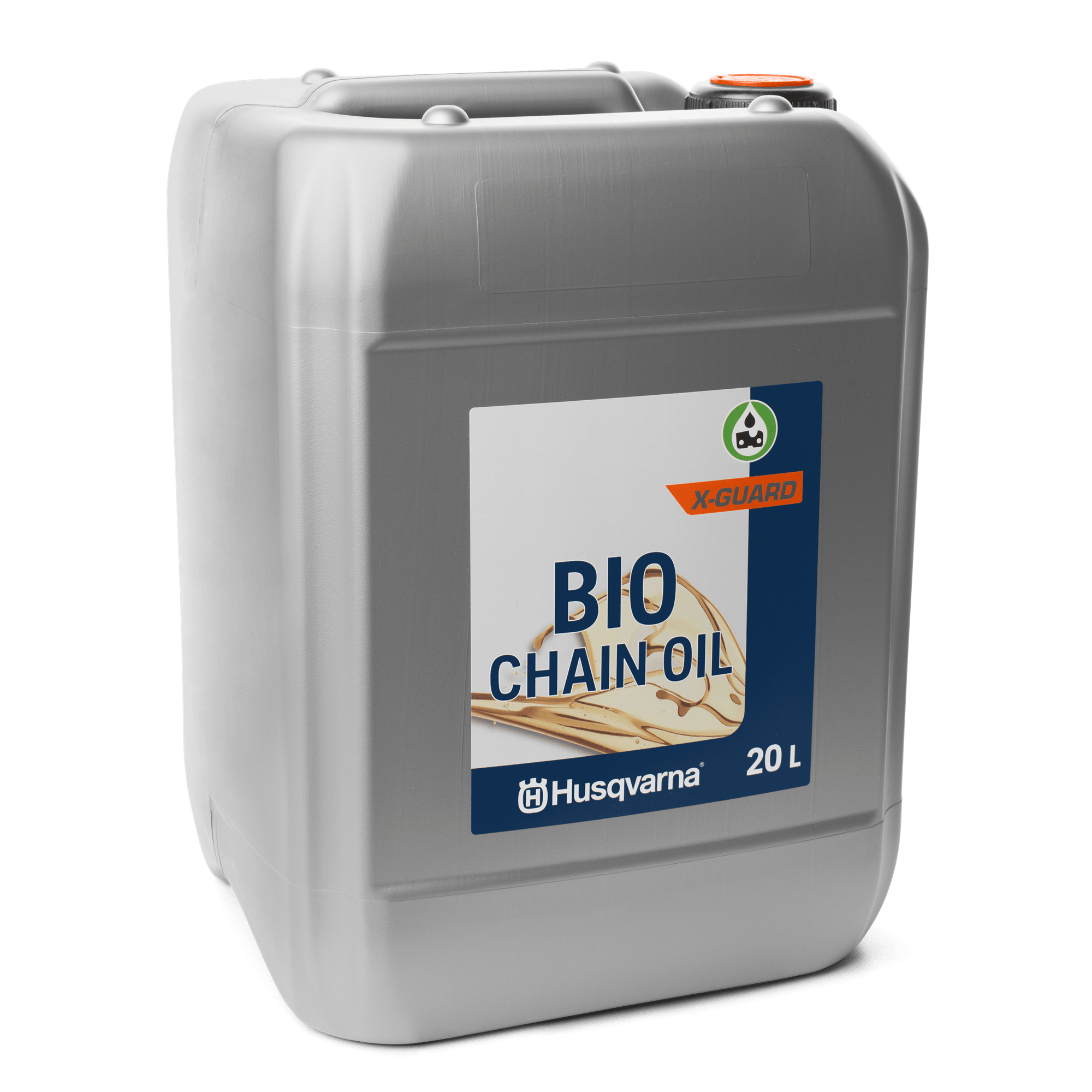 Husqvarna X-GUARD Bio är en vegetabilisk kedjeolja med premium-kvalitet, baserad på förnybara råvaror. X-GUARD Bio är en året-runt olja med förstklassig smörjning och fästförmåga. Tack vare fästförmågan kan oljekonsumtionen minskas utan risk för ökat slitage. Den ger också minimala mängder rester på maskinen. X-GUARD har ett extremt högt viskositetsindex, vilket innebär att viskositeten varierar mindre med temperaturen och kedjeoljan fungerar utmärkt även under kalla förhållanden. X-GUARD Bio oxiderar inte vilket ger mycket god lagringsstabilitet. Produkten är biologiskt nedbrytbar i mark och vatten, giftfri för människor och miljö. EU Ecolabel-certifiering gör det enkelt att veta att produkten är både miljövänlig och har god kvalitet.