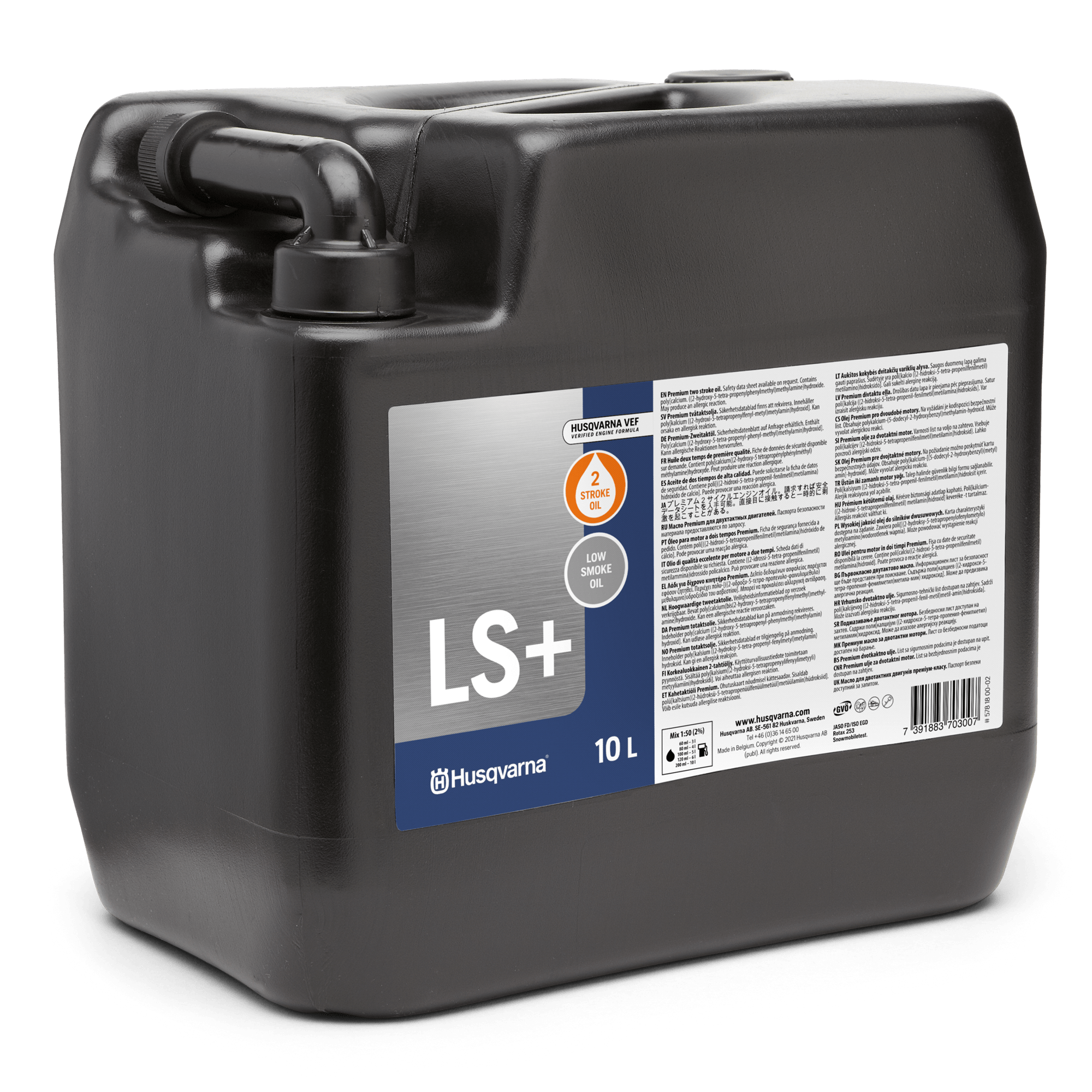 2-taktsoljan Low Smoke+ är en blandning av mineraloljor och syntetiska oljor. Den avger mycket lite rök och har extremt goda smörjegenskaper på motordetaljer som utsätts för hög belastning, så som exempelvis vevstakslager. Den passar bäst för motorsågar och röjsågar med en cylindervolym upp till 55 cm3. Denna olja avger väldigt låga rökutsläpp, vilket är särskilt viktigt när den används i produkter som ofta används i tätbebyggda områden. Den ger dessutom lägre motortemperatur, vilket ökar motorns livslängd. Husqvarna Low Smoke + ger mycket gott skydd mot skärning, kolrelaterad såväl som skärning p.g.a. mager bränsleblandning.