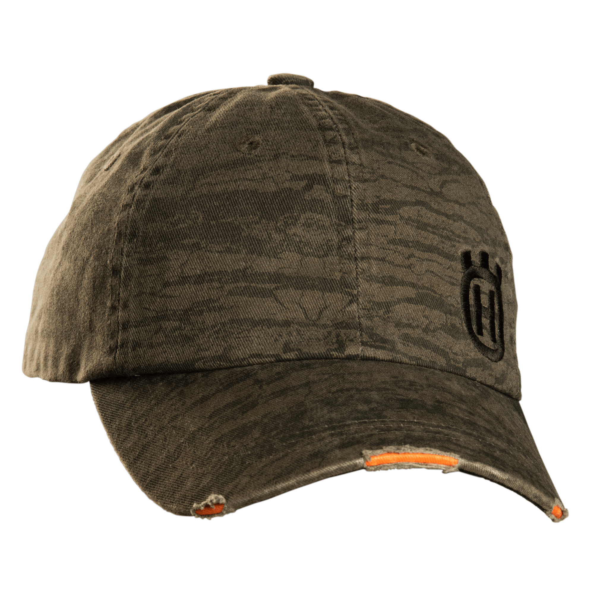 En skogsgrön vintage-keps med barkmönstrad kamouflage och justerbart läderband. Bandet baktill gör att du lätt kan justera kepsen för perfekt passform.
